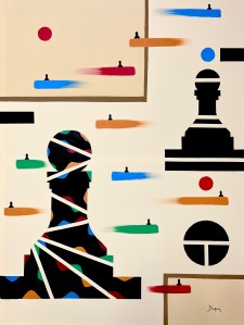 Doğan Ökten, satranç taşlarının klasik formlarını dönüştürerek onları estetik, simgesel ve felsefi bir düzlemde yeniden yorumlayan çağdaş bir ressamdır.
